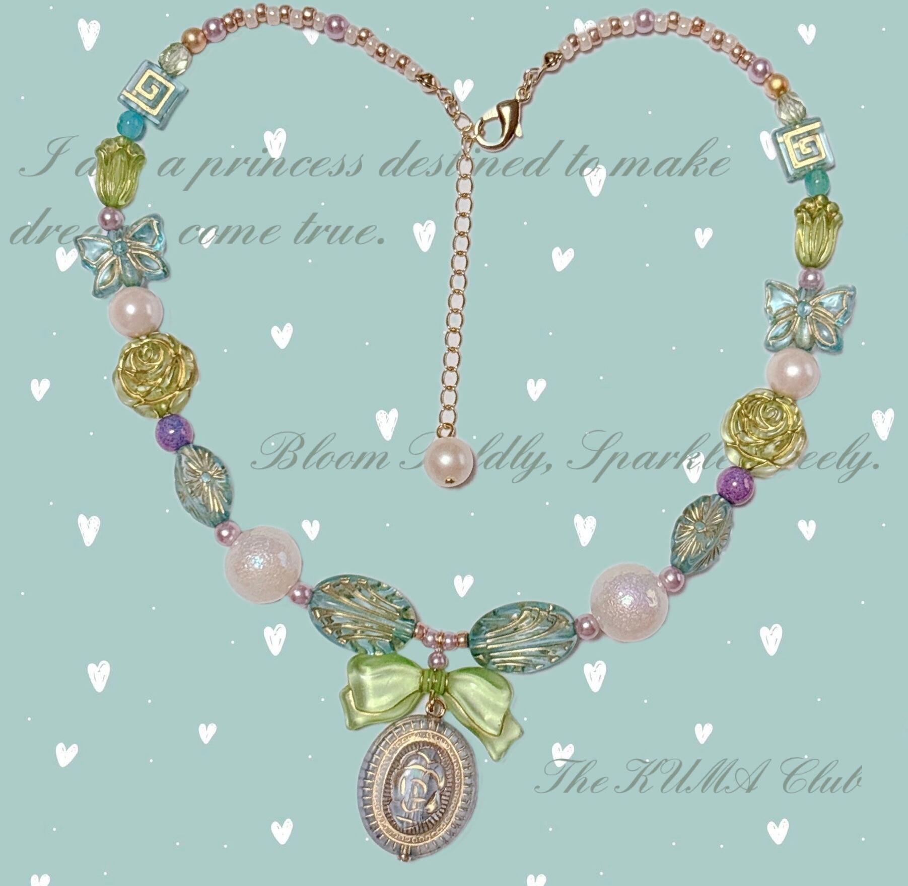 ガラスのチェコビーズ等と組み合わせ可愛さと姫感の絶妙なバランス。